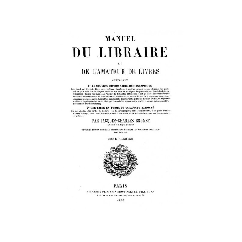 La obra de Mr Brunet es tan indispensable al bibliógrafo como el martillo al carpintero ,el yunque al herrero, y la azada al labrador : no es por tanto extraño que sea la primera que adquiere quien trata de formar una biblioteca en cualquiera de los ramos del saber humano, y la que continuamente consulte mientras conserve alguna afición a los libros . – Sorprende y maravilla como un hombre solo, sin más auxilios que su estudio, laboriosidad y manía, ha podido llegar a coordinar un repertorio tan precioso s la prueba más patente de los prodigios a que alcanza una fuerza de voluntad sostenida por más de sesenta años .– Mr Brunet ha tenido la buena idea de incluir en su manual solamente las obras clásicas y raras en casi todas las lenguas antiguas y modernas , y por eso son muy necios los que sin atender a estas circunstancias califican de singulares o notables todas aquellas no citadas en él, cuando la mayor parte de las veces esta falta solo indica ser el libro tan común y su valor tan ínfimo, que no ha merecido ocupar un lugar al lado de las joyas u obras útiles é interesantes descritas en el índice. También me dan lástima los que toman por tipo en sus adquisiciones o ventas los precios designados en el catálogo de Brunet, cuando este los saca de los de algunas almonedas , sin tomar en cuenta lo mucho que influye en estos casos el amor propio picado de dos o tres contrincantes adinerados; la belleza o encuadernación del libro; el haber pertenecido a algún sujeto distinguido , el gusto o la moda dominante en aquella época ; la falta de conocimientos de los presentes; algún defecto encontrado en el volumen en el acto de enajenarse , sin estar anotado en el Catálogo , y en varias ocasiones hasta las circunstancias políticas . Solo así puede explicarse la disparidad de valores que se dan a muchísimas obras .