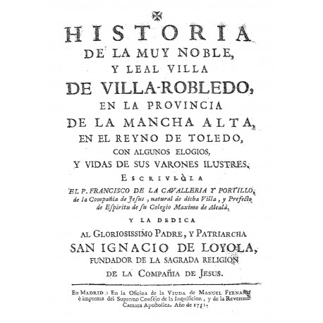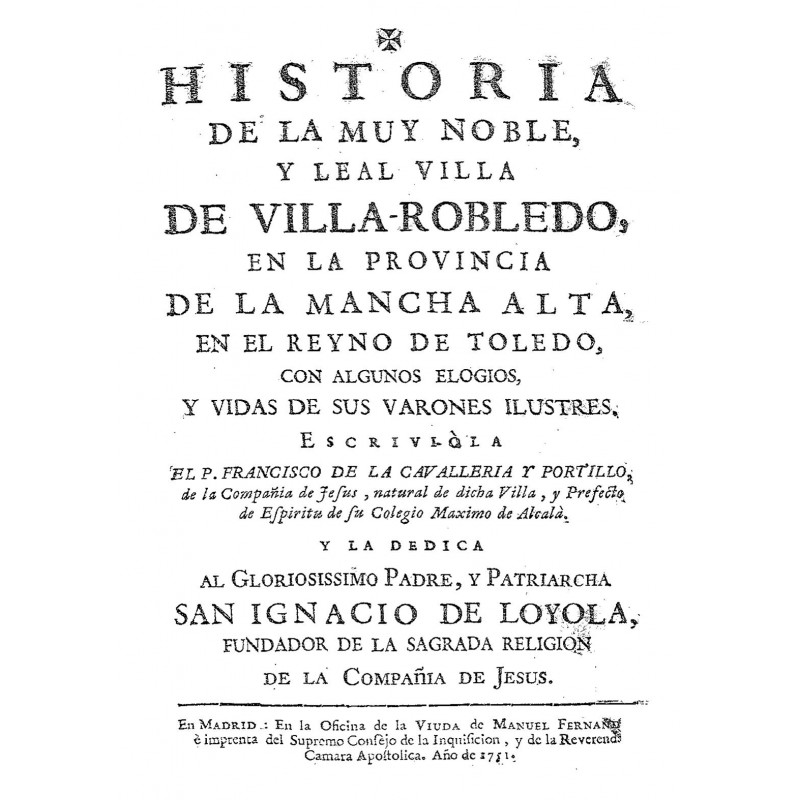 Salvá ( 2849) en su Catálogo señala que las dos terceras partes del volumen, o sea todo el libro segundo, comprende las biografías de los hombres ilustres de Villarobledo