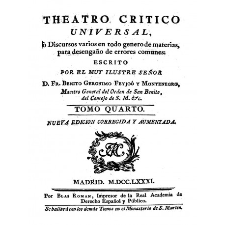 TITULO COMPLETA : Teatro crítico universal o Discursos varios en todo género de materias, para desengaño de errores comunes