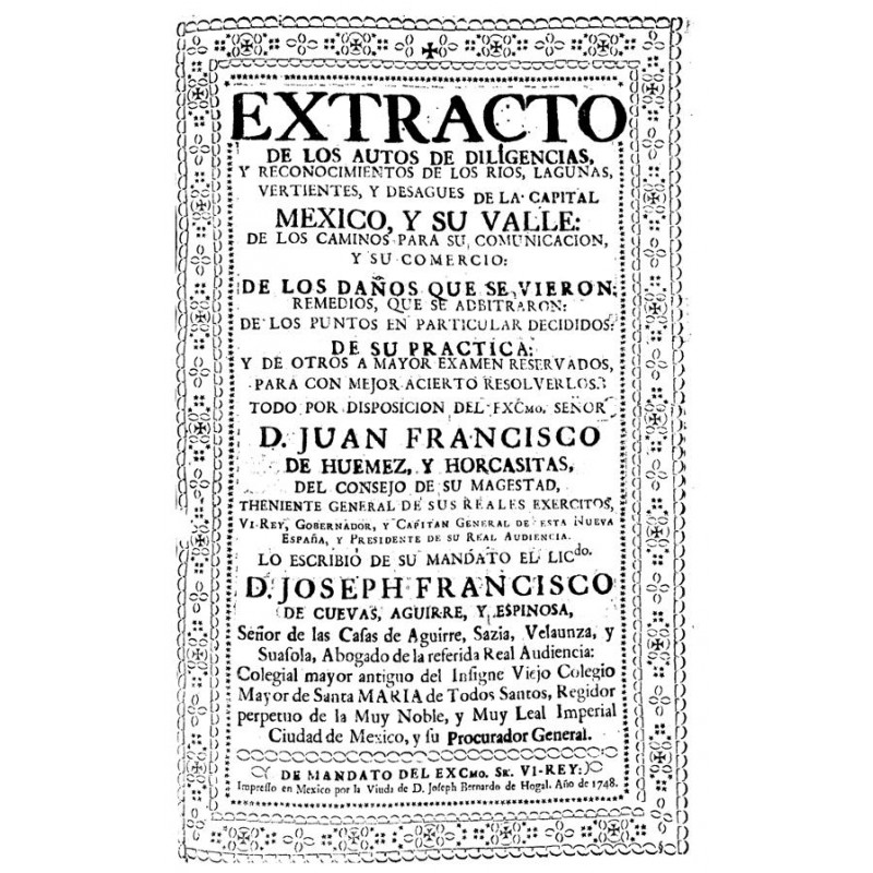 TITULO COMPLETO : Extracto de los autos de diligencias y reconocimiento de los r¡os, lagunas, vertientes, desagües de la capital de México y su valle y los caminos para su comunicación y su comercio