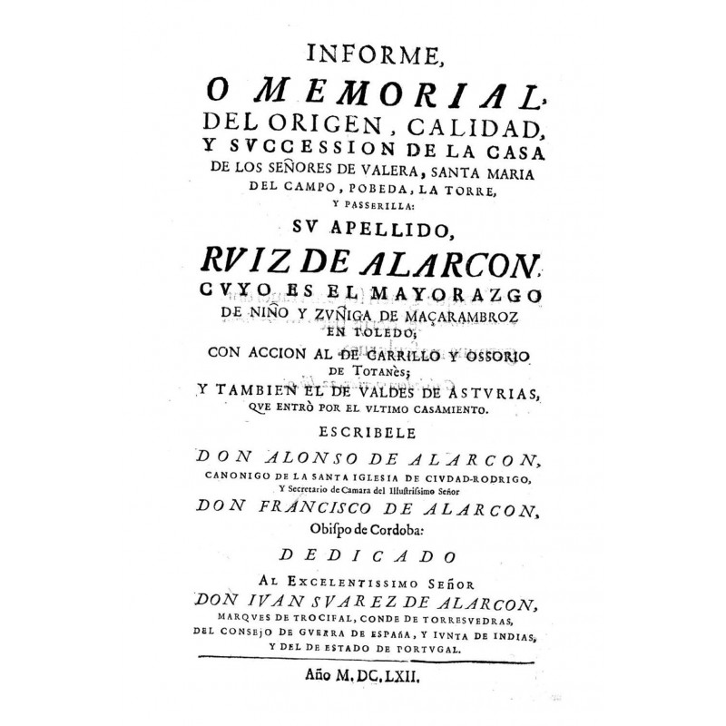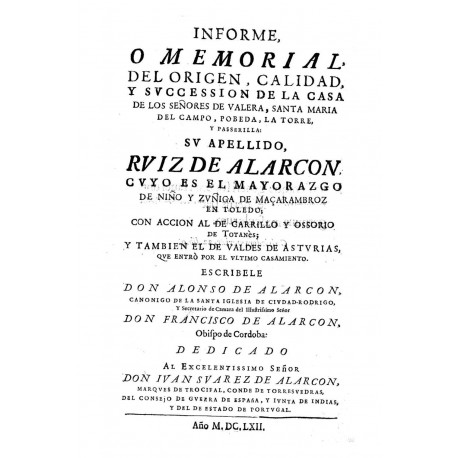 TITLO COMPLETO : INFORME O MEMORIAL DEL ORIGEN CALIDAD Y SUCESION DE LA CASA DE LOS SEÑORES DE VARELA, SANTA MARIA DEL CAMPO, POBEDA, LA TORRE Y PASERILLA