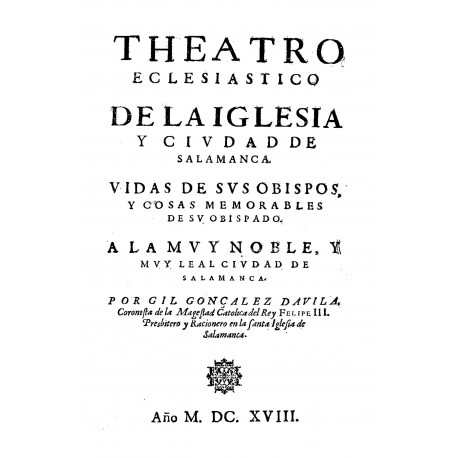 TITULO COMPLETO : Theatro eclesiástico de la iglesia y ciudad de Salamanca vidas de sus obispos y cosas memorables de su obispado