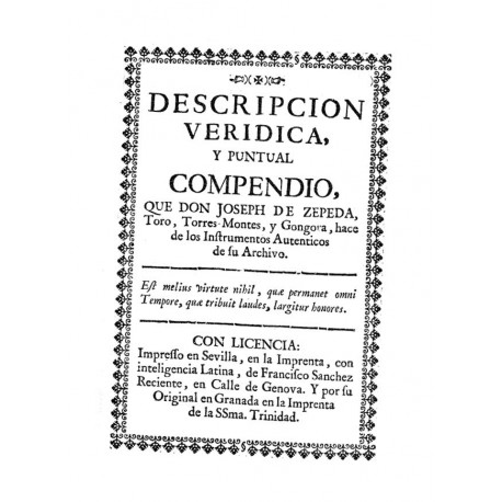 TITULO COMPLETO :Descripcion verídica, y puntual compendio , que don Joseph de Zepeda, Toro, Torres-Montes, y Góngora, hace de los instrumentos auténticos de su archivo--