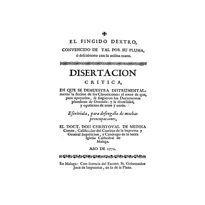 El fingido dextro i convencido de tal por su pluma ¢ descubierto con su misma mano disertación critica en que se demuestra instrumentalmente la ficción de los cronicones